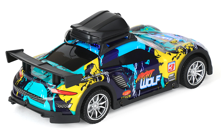 სპორტული მანქანა კამერით | ზომა: 23 x 9,5 x 8,6 სმ | დისტანციური მართვა - პულტი 2,4 GHz | სიგნალის მანძილი ± 35 მეტრი | წამყვანი თვლები: უკანა | საბურავები - რეზინა | განათება - კორპუსი ნათდება წითელი და ლურჯი ფერებით
