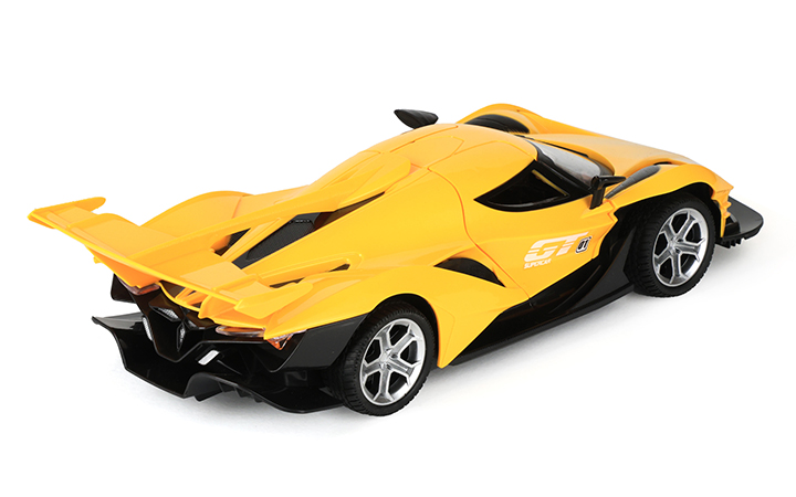 სპორტული მანქანა | ზომა: 33 x 12.5 x 6.5 სმ | დისტანციური მართვა - პულტი 27 MHZ | სიგნალის მანძილი ± 20 მეტრი | წამყვანი თვლები: უკანა | საბურავები - რეზინა | სიჩქარე - 15-20 კმ/სთ | განათება - ფარები | კარები იღება პულტიდან | მანქანა - rechargeable battery, პულტი - 2 AA ზომის ელემენტი
