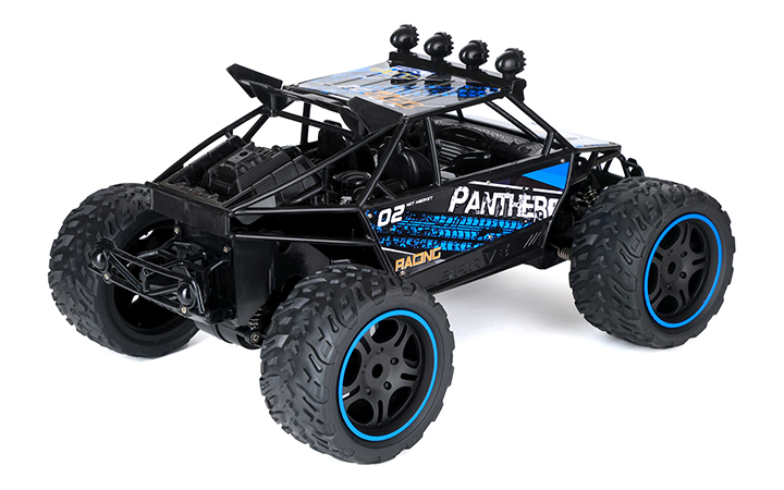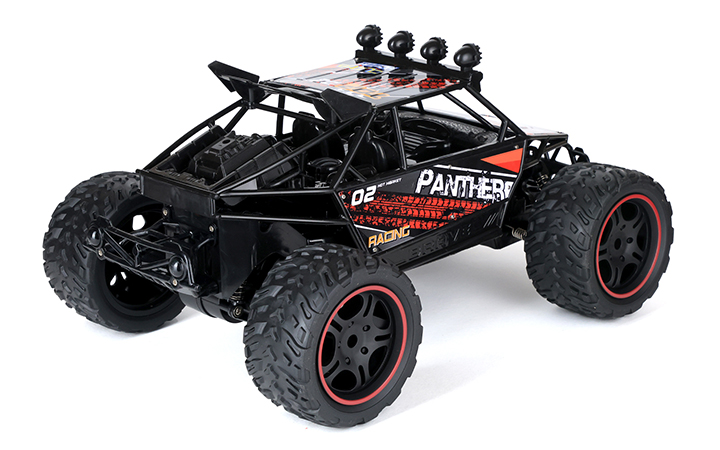 მაღალი გამავლობის მანქანა | ზომა: 40 x 25 x 18,5 სმ | დისტანციური მართვა - პულტი 2,4 GHz | სიგნალის მანძილი ± 30 მეტრი | წამყვანი თვლები: უკანა | კორპუსი - მეტალი და პლასტმასა | საბურავები - რეზინა | დიფერენციალური გადაცემათა კოლოფი | მანქანა - 6 ცალი AA ზომის ელემენტი, პულტი - 2 AA ზომის ელემენტი